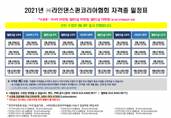 (사)라인댄스퀸코리아협회 2021년도 상반기 자격증 일정 공지